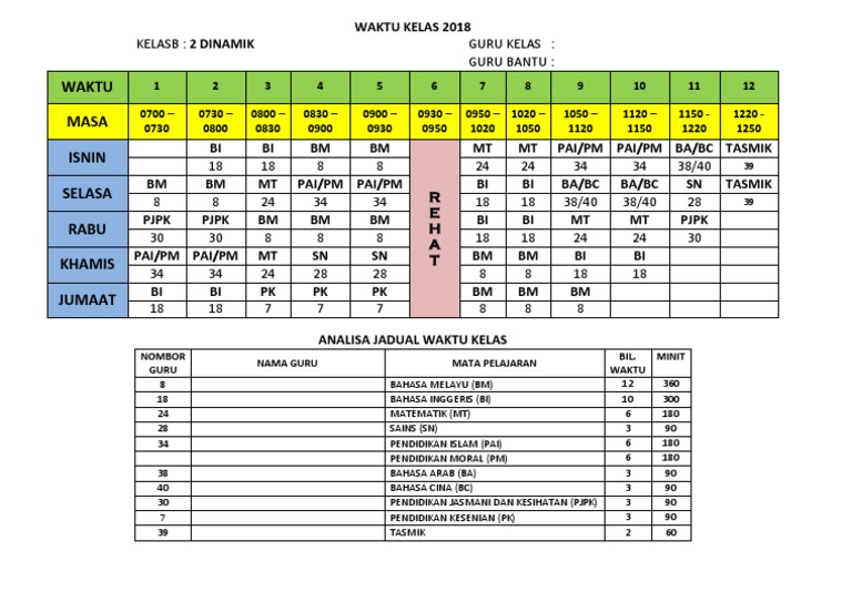 Related : Contoh Jadual Waktu Kelas - Bahasa indonesia 1 jam pembelajaran 2..