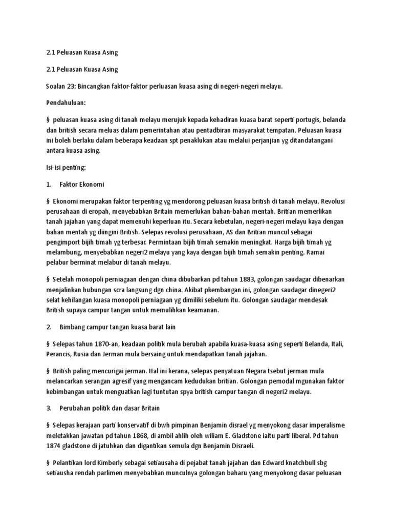 Faktor perluasan kuasa british di perlis, kedah, kelantan dan terengganu. Tingkatan 3 sejarah peluasan kuasa british di pulau pinang. kesimpulannya, perluasan kuasa british d ngri2 mlayu dsbbkan oleh faktor perubahan politik dan dasar british. • kedudukan yang strategik • menghalang kemasukan kuasa barat lain • kemakmuran dan kekayaan sumber hasil • menghubungkan burma dengan pulau pinang • beban orang putih. Malahan orang cina dan india lebih banyak menetap di pulau pinang dan singapura.