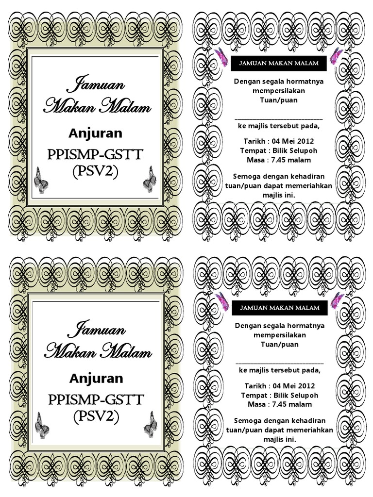 Kad jemputan kahwin kad jemputan harijadi kad jemputan jamuan makan lain2 majlis turut disediakan. Cari atau reka kad jemputan yang paling menarik untuk majlis raptai makan malam anda. Drepturi de autor descărcați acum. Kad jemputan majlis kesyukuran marhaban doa makan malam contoh format kupon bazar cara buat kahwin whatsapp guna software free youtube undangan syukuran pernikahan rumah baru wisuda. Dengan kemudahan akses internet dan telefon pintar, lebih ramai pengguna kini menggunakan laman media sosial dan aplikasi mesej sebagai medium penghubungan.